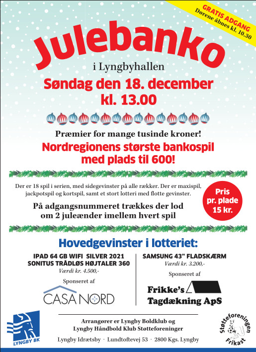 Kom og vær med til det årligt tilbagevendende store julebanko - læs mere nedenfor: